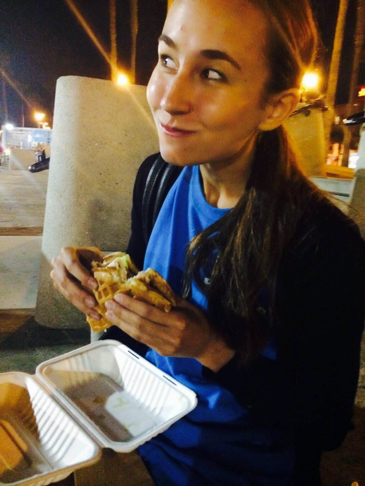 V neděli nás Josh vzal do jeho kostela. Ceníme si toho, protože se nám takto hodně otvírá a nás ten jejich pohled na svět určitým způsobem obohacuje a poznáváme tak jinou kulturu, což je podstata cestování. Bylo to moc zajímavé! Nejsem věřící, ale tady většina je, tak se člověk alespoň něco dozví a má o čem opět přemýšlet. Zbytek dne jsem strávila u bazénu u místa, kde bydlíme a dělala věci na blog, skypovala domů a zaplavala si. Nádherná pohoda! Kluci koukali na World Cup, tak jsem vždy viděla, jak skáčou u okna radostí a nebo naopak, tak mě docela bavili. Poté jsme s Luckou jely na Mainstreet a dostaly jsme velkou chuť na Bruxie – slané vafle! Dala jsem si s hovězím masem, čedarem a slaninou! To nám ještě vyvolalo další chutě na zmrzlinu, takže jsme skočily ještě pro Gelato, kde piccolo je jako u nás grande! Vynikající příchuť Orea, S’mores a citronu! Docela povedený víkend!
