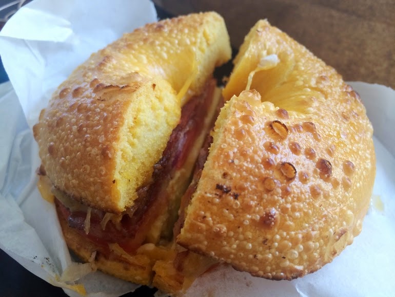 Bagel“. Můj první bagel! A kdy jindy si dát typický snídaňový americký bagel –