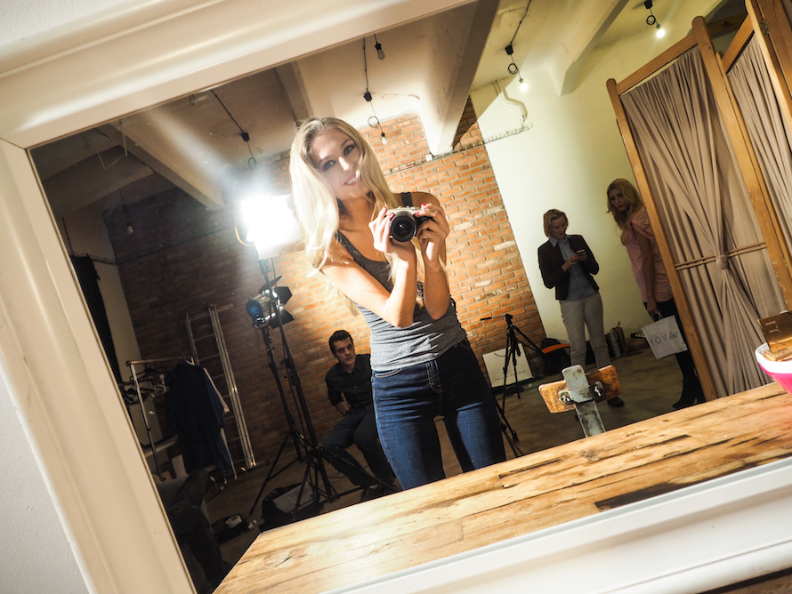 Na místo činu jsme měly dorazit v 8:45. My jsme s Míšou byly na řadě jako první, takže jsme viděly, jak se vše připravuje a to zároveň s naší vlastní „proměnou“. Z nenalíčených rozespalých blondýnek jsme se totiž pod rukou zkušených make-up artistů a hair stylistů stávaly pro hledáčky fotoaparátů a kamer vhodnějšími. Všechny finalistky jsme chodily postupně v průběhu dne a každé z nás byl vymyšlen jiný make-up, který má tu naší přirozenou krásu (používám slova make-up artistů, sama si tam nefandím, nebojte) podrthnout, co nejlépe. Styling nám připravil Dušan Chrástek. Jeany jsou kdyžtak z Topshopu, tílko z H&M a ty boty jsou mé – z ALDO. Celkově byl tým složený z profíků nejvyššího kalibru. Mimo focení jsme ale ještě natáčeli medailonky v souvislosti s tou kampaní Avonu, což bylo hodně zajímavé, protože jsme se tam každá docela svěřovala!