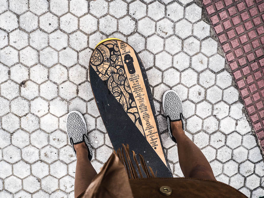 Tohle je skate kamarádky a ten nápis se mi tak líbil, že jsem vám ho musela vyfotit – explore the world!