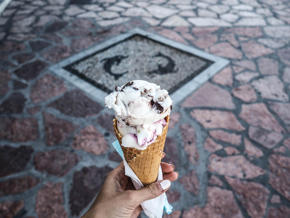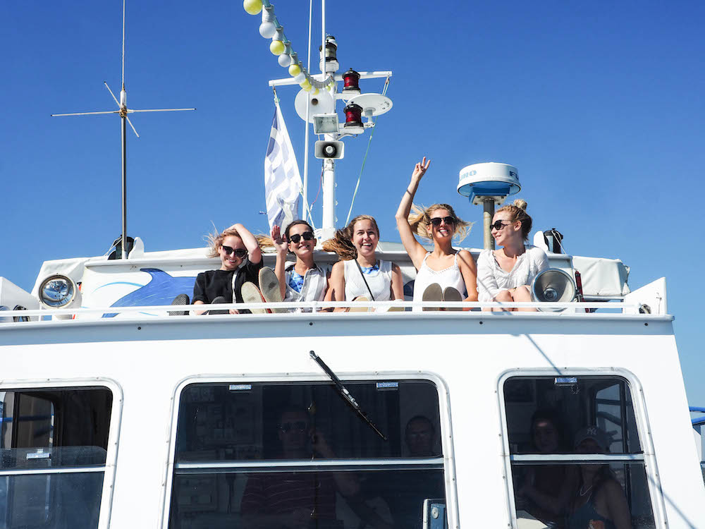 Tak co na to říkáte? Fotogeničnost opravdu na levelu sto procent! Stejně jako delikátnost místní zmrzliny! Na lodi jsme totiž poznaly s holkama jednu řeckou vlogerku, která tam byla jako jediná. Byla hrozně milá. Navíc nám dala tip na tu dobrou zmrzku a víte jak, nejen láska prochází žaludkem – i přátelství 😀 .